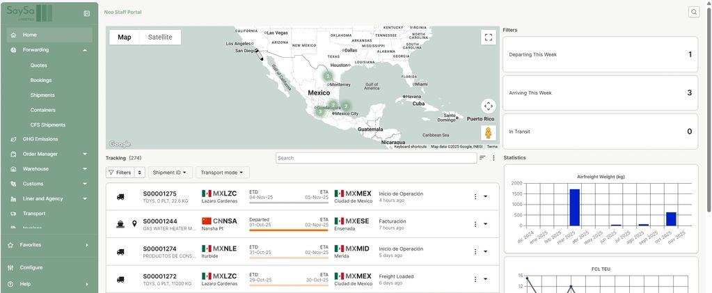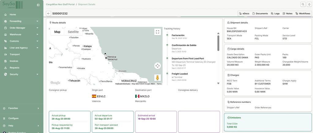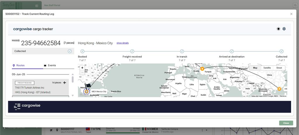 Puedes visualizar a detalle toda la información de tu embarque y tener acceso a los milestones aplicables según el tipo de operación.